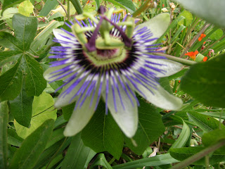 This plant is in the kiwi family, so it is not surprising that the fruits are supposed to be edible and very sweet. However, they are also small and seedy, so maybe they are not worth the trouble of picking them. I guess I don't have to worry about how much work it is to pick the fruit because, although they grow well in this climate, apparently they do not fruit. Very pretty plant with clusters of white flowers and big leaves with prominate veins. In bloom now at the UC Botanical Garden.
